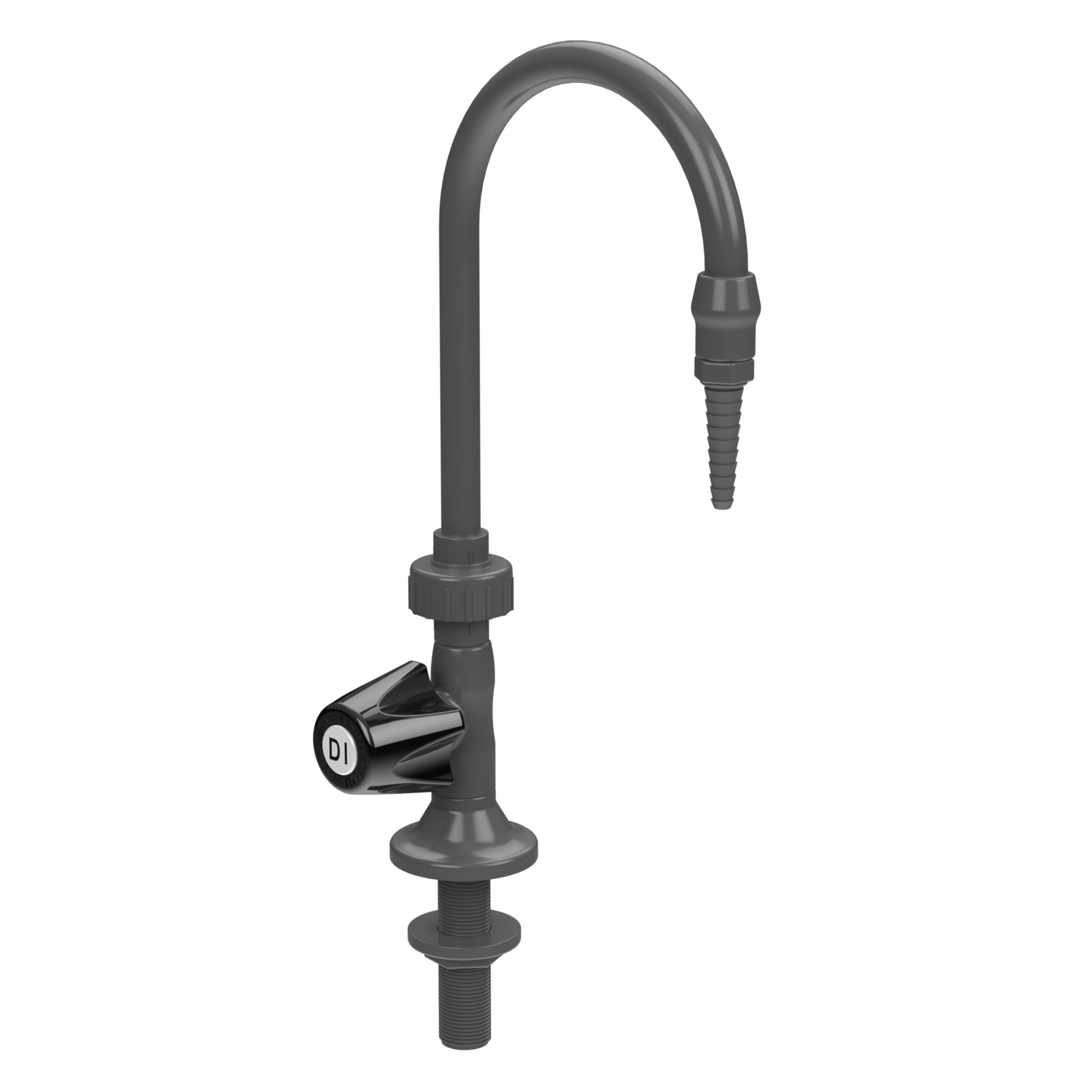 The LG-DDSU-L1 PVC Laboratory Faucet is engineered for distilled, deionized, RO, ultra-filtered water, and chemical dispensing applications. This deck-mounted model features a 360° swivel gooseneck for flexible positioning and a Duraline zero dead leg control valve for precise, reliable flow control in high-purity environments.